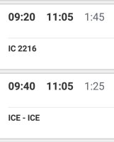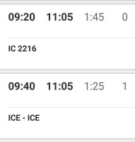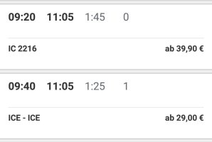 Now it is obvious what was visible also before, the slower connection is a direct connection, with the faster connection you have to change train. How would you decide now? And how would you decide if you were a mother, travelling alone with a big suitcase and a toddler in the buggy?